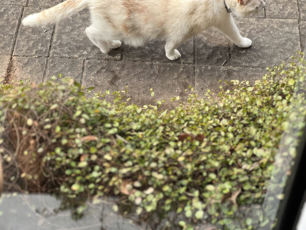 今日は卒業式でヨウちゃんお休み。昼から部活だけれど。朝はスーパー、ホットモット、銀行と動いたが、銀行が混んでいてとても時間がかかってしまった。金曜に両替するの気を付けねばとあいなった。開店前にDECHOの新作を撮影。いつも外で撮影するので今回は店内やと色々やっていると窓から見慣れた動物が横切っていくのが目に入った。ポッチ。お店ゾーンにくるのは久々やね。ベンチの所でちょっとだけコロンと寝転がった後に階段から家に戻っていったが、階段の途中で、道路工事の作業する方が気になったようだった。なにをしてるんだろうという興味深そうな目がなんというか猫っぽくなかった。知能を感じた。作業員の方は白線を引いていた。